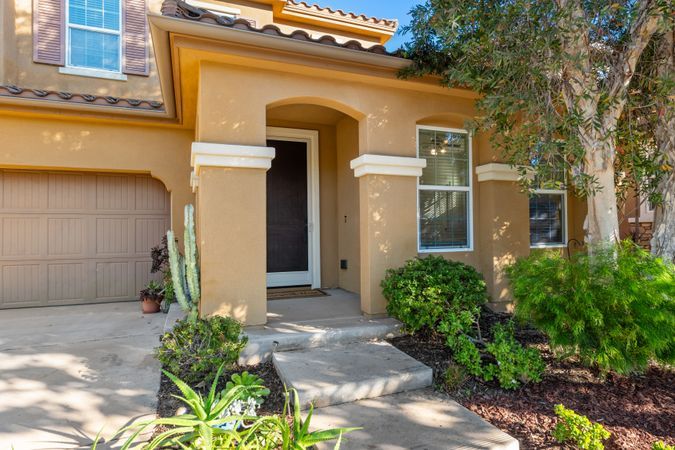 A rare opportunity to own in the highly sought-after Del Sur community, known for its private parks, resort-style pools, top-rated schools, and vibrant neighborhood events that foster a true sense of connection. This home has been beautifully maintained by its original owners and offers a versatile floor plan that is perfect for today’s lifestyle. The main level features open-concept living, dining, and kitchen spaces ideal for everyday living, along with a separate formal area, plus a guest bedroom and full bathroom—perfect for visitors or multi-generational living. Upstairs, you’ll find an open, airy loft, three additional bedrooms, a dedicated laundry room, and a spacious primary suite. The primary retreat includes a well-appointed ensuite with a soaking tub, walk-in shower, and generous closet space. Recent upgrades include fully owned solar, fresh interior paint, and new carpet throughout. The home is situated on a low-traffic street, and a rare lot with no homes behind it, offering exceptional privacy and a backyard with mature landscaping and endless potential to create your dream outdoor space. Ideally located one block away from a community park and pool, and within walking distance to top-rated schools. Del Sur offers a total of 14 parks, 11 solar-heated pools, miles of hiking and biking trails, sports courts, a dog park, and regular seasonal events. With nearby shopping, dining, gyms, and everyday conveniences, this home truly offers elevated living in one of North County’s most desirable communities. Don’t miss the opportunity to make this exceptional home yours.